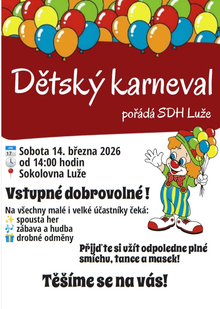 SDH Luže vás zve na DĚTSKÝ KARNEVAL